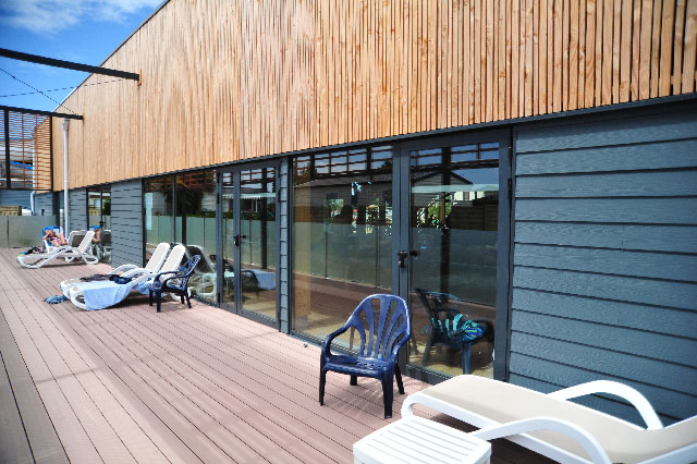 Der Außenwasserbereich verfügt über eine neue, aufregende Rutsche, die Jung und Alt gleichermaßen Spaß macht.