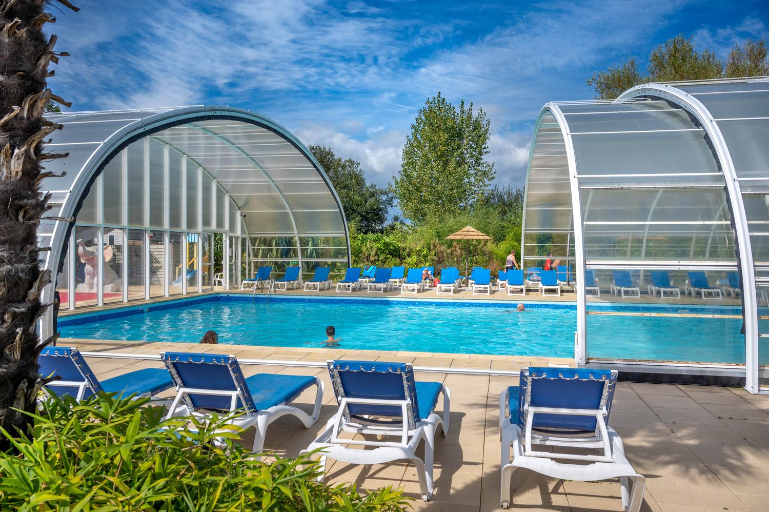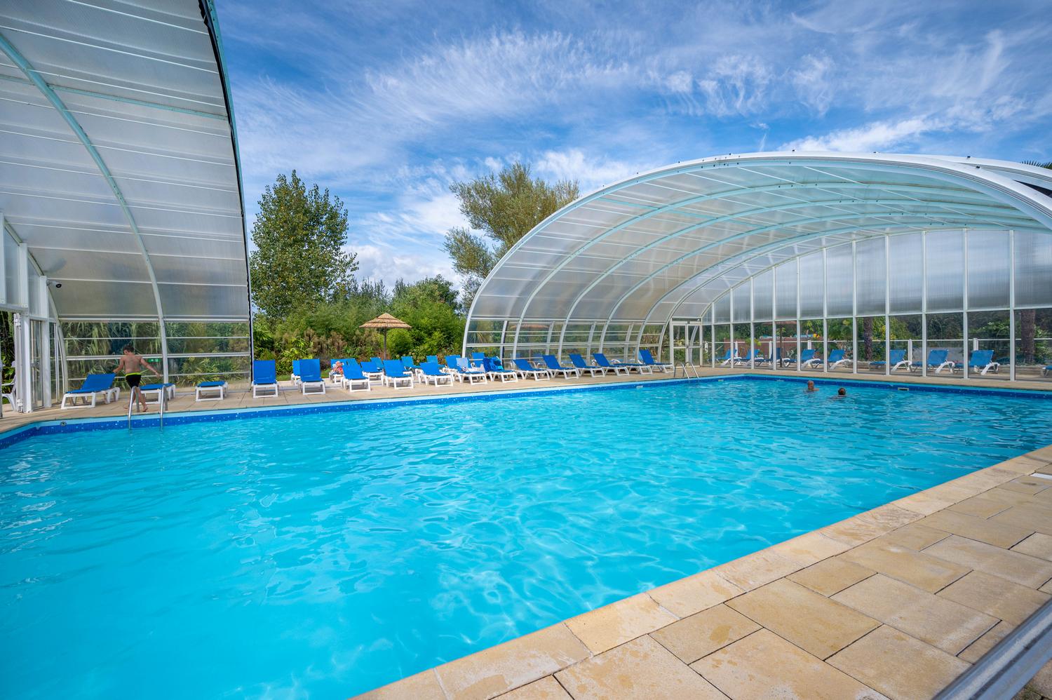 Ouverture et chauffage de la piscine couverte toute la saison, et parc extérieur ouvert dès avril (chauffé de mi-mai à mi-septembre).