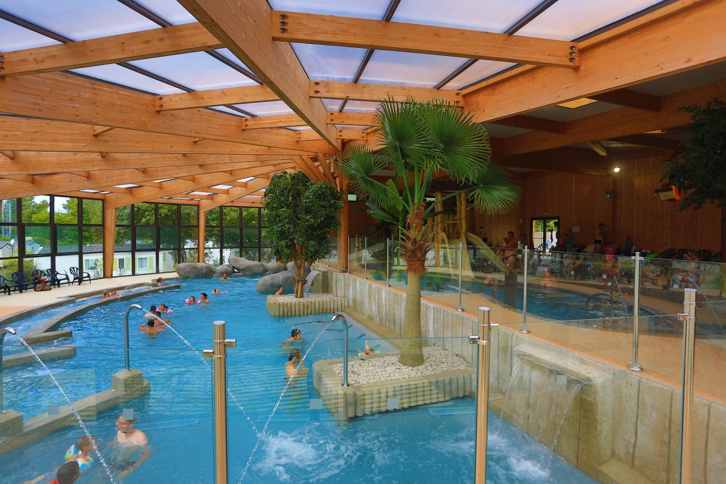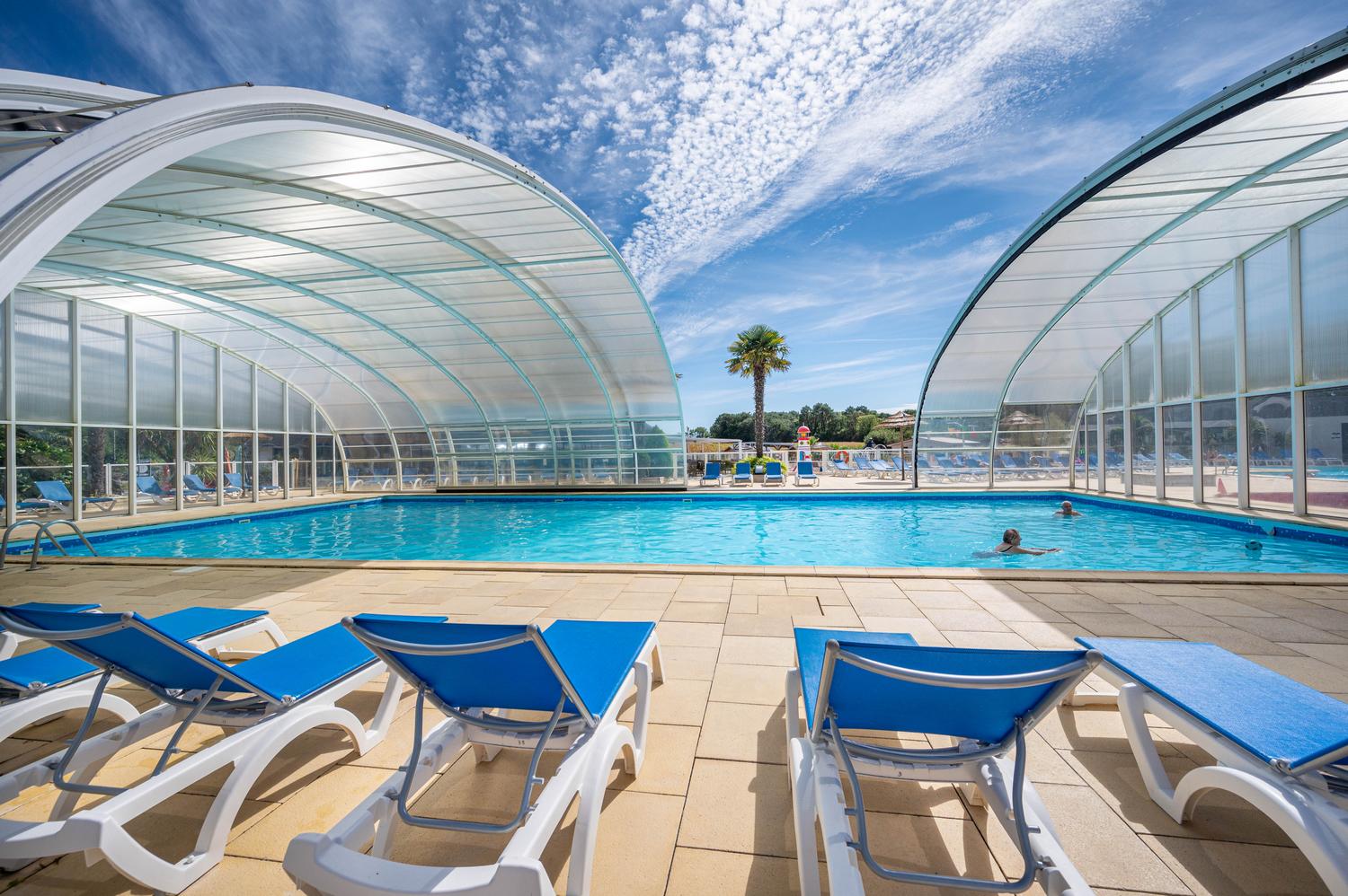 Profitez de la baignade dès les vacances de Pâques grâce à notre piscine couverte de 800 m², où l’eau et l’air sont chauffés tout au long de la saison, de l’ouverture du camping en avril jusqu’à sa fermeture.